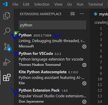 아나콘다 설치 후 vs code에서 'python'으로 검색하여 아래의 3가지 패키지 설치