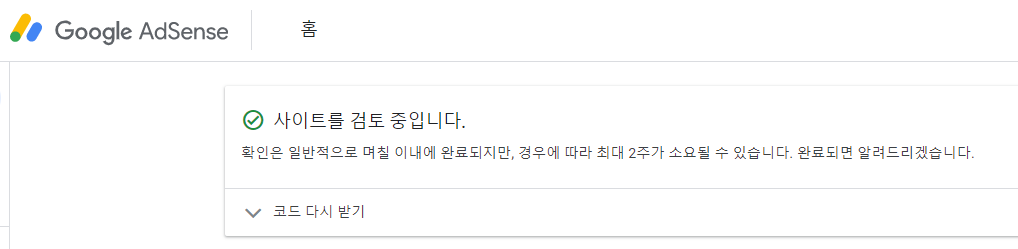 | 5) 구글 애드센스에서 html 에 포함 완료 확인 후 완료 - 이후 구글에서 검토 단계로 진행 |