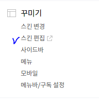 | 4) html 편집 : tistory 사례 꾸미기>스킨 편집 메뉴 진입하여 html 편집 |
